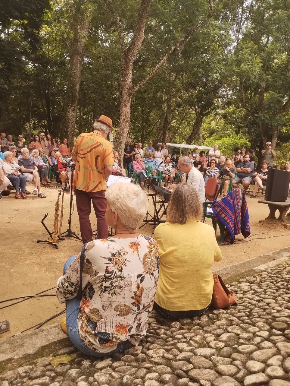 Show de música instrumental no Jardim Botânico, neste domingo. Gilson Peranzetta e Mauro Senise tocaram releituras de grandes obras da MPB, além de músicas autorais. Eles apresentaram seu projeto, "Nós, as crianças", dizendo que os músicos nunca envelhecem, e estão sempre em busca de uma sonoridade única. Durante o show chegou a chuviscar, mas nada interrompeu a apresentação. Apesar de tocarem juntos há 35 anos, parece que não se consideram uma banda ou projeto em comum com nome artístico definido - os projetos são os nomes dos álbuns. Assim, coloco abaixo o link dos dois canais.